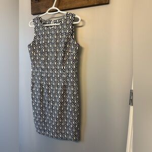 Mario Serrani White and Blue Sheath Dress Sleeveless Crew Neck size 8