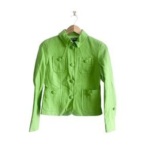 Introducing the Mario Serrani Women's Wool Button-Down Jacket – the perfect piece for any spring wardrobe. This jacket features a classic lime green color and long sleeves, made with 100% wool to keep you cozy and comfortable on those chilly spring days. This timeless piece is also lightweight, making it ideal for travel or any outdoor activities. Available in size 6, this jacket is sure to become a staple in your closet.