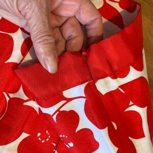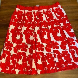 Mario Serrani skirt, red wht floral print, box pleat swing style, EUC ,Italian