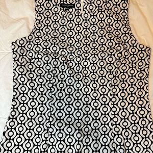 Mario Serrani women's sleeveless dress midi geometric print back slit business casual. Size medium, perfect for the office or a casual day out.