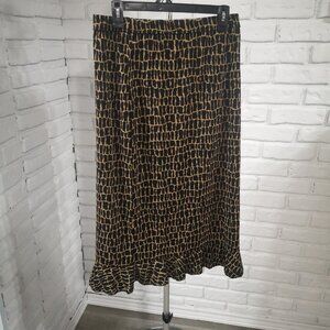 Marisa Christina Ladies Size Medium Gold & Black Pattern Elastic Waist Skirt