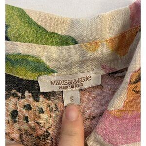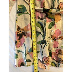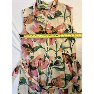 Marisa & Marie Cream Floral Button Up 100% Linen Sleeveless Collar Midi Dress small