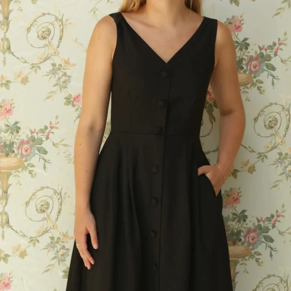 This A-line cocktail dress - exclusive at Boutique 1861 - will make you radiate with joy at every occasion! The voluminous skirt and V neckline will highlight your figure, while the silky lining will offer you incomparable comfort. The buttoned front adds some charm to the piece. Also featuring two pockets and a back zipper, this dress will quickly become your favourite!