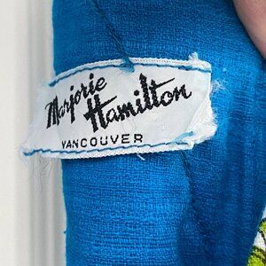 This simple, easy-to-wear floral dress dates to the 1960s. It was made by Marjorie Hamilton of Vancouver, who, by the mid-60s, had one of the largest dress factories in Vancouver. She started her business by producing lingerie during the 1940s and slowly grew it by adding dresses, skirts, and blazers to her product line, eventually selling her business in 1985 (information courtesy of Jonathan Walford, Canadian fashion historian).
