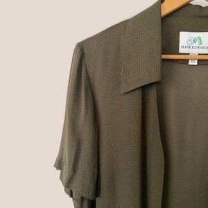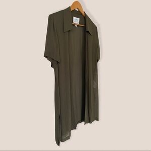 Mark Edwards Olive Sheer Long Open Blouse Size 14