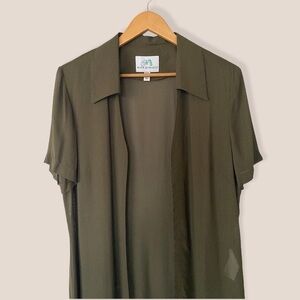 Mark Edwards Olive Sheer Long Open Blouse Size 14
