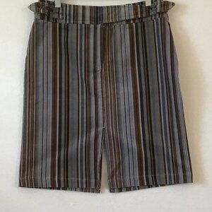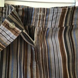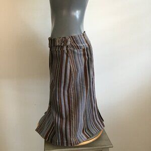 Retro style, striped, corduroy skirt with attached belt and dual slits on front and back.