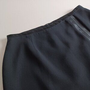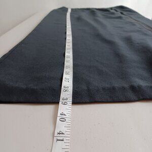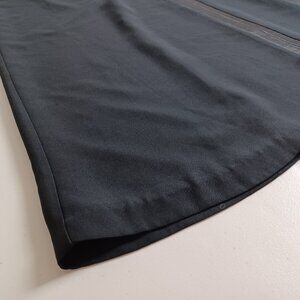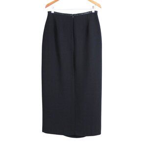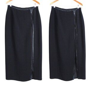 Elegant maxi skirt in black with glossy trim accents. Designed to elongate the silhouette, the material has a nice drape, fully lined, and no stretch. The front slit is adjustable for customized styling. Perfect for spring, fall, and winter. Like new, excellent condition.