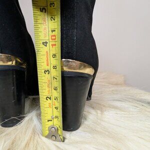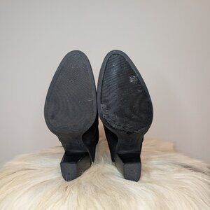 Mark Fisher Black Suede Heeled Pull-On Booties | Gold Heel Accent | Women's 7.5