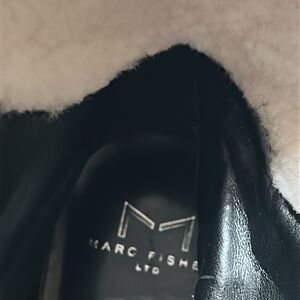 Mark Fisher,boots,sheep fur,Black leather biker wm sz 7.5 chunky heel,platform