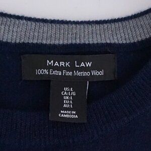 Mark Law Navy 100% Extra Fine Merino Wool Fine Knit Peppy Crewneck Sweater Large