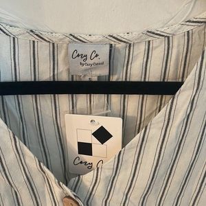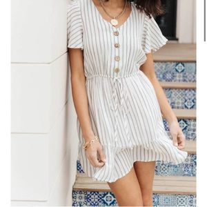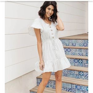 This dress is our go to look for wandering through a Saturday morning farmers market. The breezy material will keep you cool on any outing. We love the beautiful functional buttons and pretty decorative tie around the waist. We love this dress and know you will too.