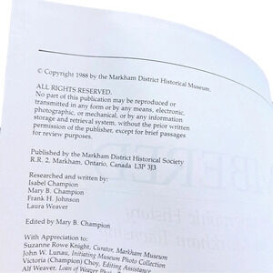 Markham Remembered Historical Society 1988 Book HC