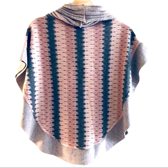 Marko's Sweater pink Knit cowl Neck cropped Striped Poncho Sweater One size