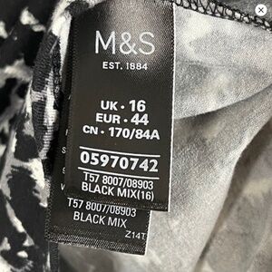 Very soft stretchy fabric (feels like jersey) and a black, white and gray print