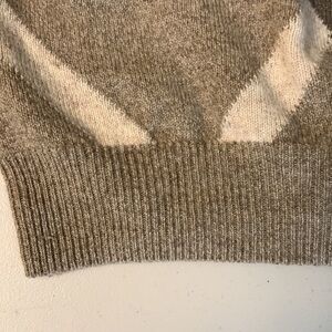 This is a beautiful 100% lambs wool sweater in an oatmeal colour with a diamond print on the front