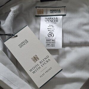 Marks Spencer Pants Mens 38 x 31 Beige Zip Wool Blend Pockets Classic Trousers