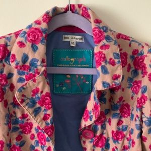 Girls Marks & Spencer beige corduroy jacket with beautiful pink and blue rose pattern. In great condition. Girls Size 5-6.