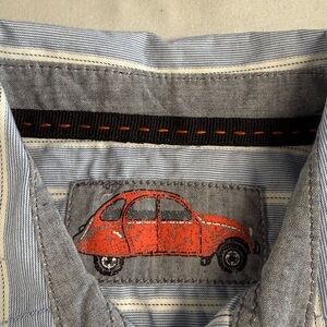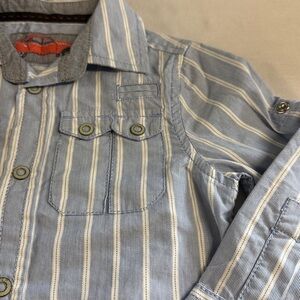 Stylish blue and white striped button-up shirt. Perfect for casual wear.