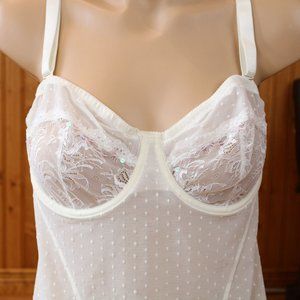 Marks & Spencer White Bodysuit 34C Sequins Polka Dots and Lace Teddy Bridal T61