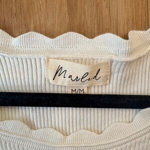 Elevate your basics with this sleek white ribbed tank top from Marled! Featuring delicate scalloped edges for a subtle feminine touch, this versatile tank is perfect for layering or wearing solo. A must-have addition to any wardrobe!
