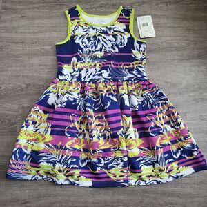 Marmellata Floral Stripe Scuba Skater Dress-MULTI-8