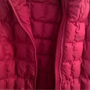 Preloved Marmot Quilted Jacket. Size XL. This appears to be Youth XL. Pit to Pit is approximately 19.5”. Length from shoulder to hem is approximately 23” long, so may fit a size small women. Pockets. Some staining but not that noticeable in my opinion. YKK front zipper. Lightweight.