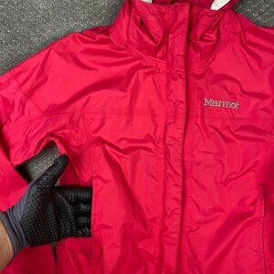 Marmot Jacket Women's Small Pink PreCip Eco Rain Waterproof Hooded Hiking Nylon