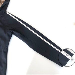 Women’s black fleece lined zip up jacket with fur lined hood in size L Large by Marmot.
