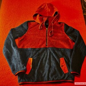Marmot blue and orange fleece half zip hood jacket sweater EUC