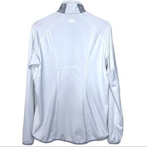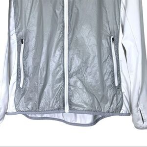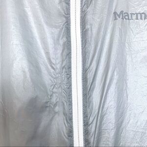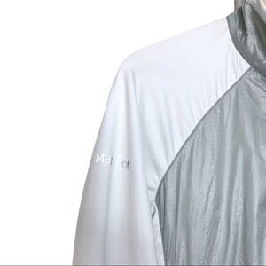 This is a Marmot Frequency Hybrid Jacket in Grey and White