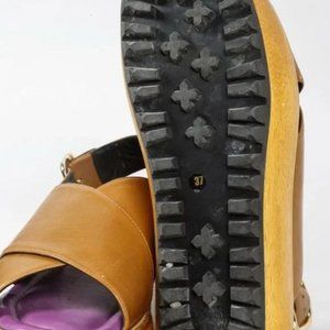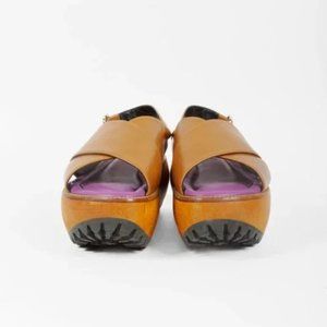 Marni Brown Leather Wooden Platform Slingback Sandal