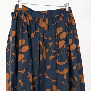 Marni Resort 2019 Navy Belou-Print Cotton Poplin Gathered Midi Skirt