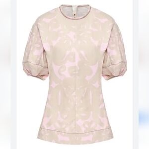 Marni Resort Cotton and Linen Blouse Balloon Sleeves Tan Pink 40 IT | 4 US