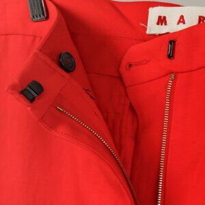 Effortlessly elevate your wardrobe with these tomato red pants from Marni. Crafted with luxurious materials, these pants offer a sophisticated and exclusive look. The vibrant red adds unexpected colour to any outfit while the chino style provides a classic yet modern touch. Perfect for the fashion-forward individual.