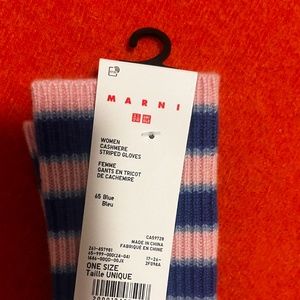 Marni and Uniqlo collab blue and pink striped cashmere gloves NWT