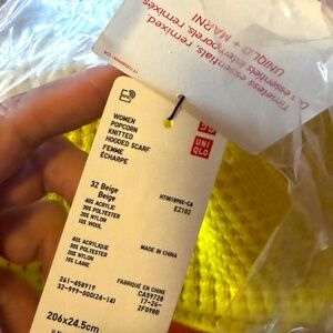 Marni and Uniqlo mustard yellow touch of wool popcorn knitted hooded scarf NWT