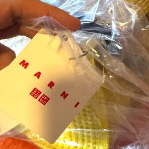 Marni and Uniqlo collab mustard yellow touch of wool popcorn knitted hooded scarf new with tags. Made using a contoured chunky knit fabric with deep ridges, 40% acrylic, 30% polyester, 20% nylon and 10% wool, length 40.5", width: 9.6", 206 x 24.5 cm. Limited edition and long gone. This item comes from a smoke free, pets friendly home. Recycled bags/box used when possible. Please, let me know if you'd like any additional info. Thanks for watching!