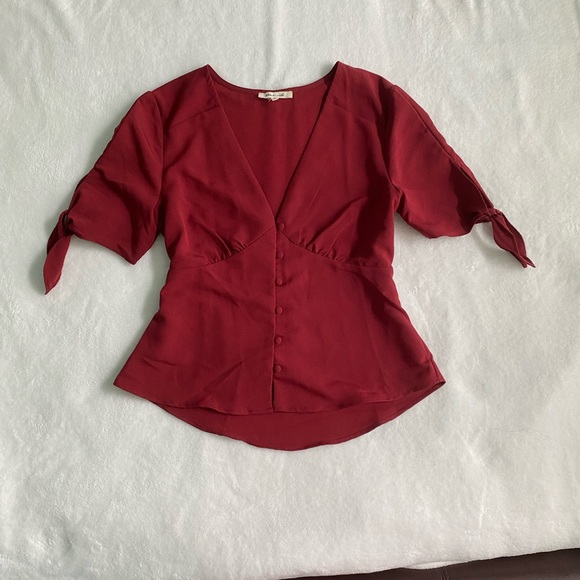 Maroon blouse with tied sleeves and button detailing, perfect condition. Brand is Blush Ciel