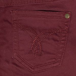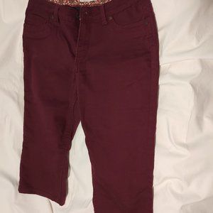 Deep maroon capris, rarely worn, with back pockets and a floral print inside.