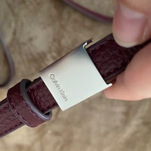 Lovely brown/maroon bag from Calvin Klein, with adjustable strap. Lightly used, in great condition! Just has a mark on the corner of the bag as seen in the photo, but its not very noticeable.