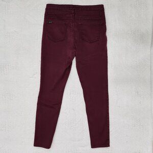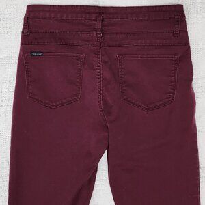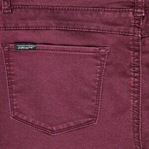 Retro inspired Jordache Maroon High waisted Narrow fit/Skinny jeans with triple button & zip fly closure. 10 inches rise aprox. 33 inch waist aprox. 37.5 inch outseam aprox. Size 12. Like new condition. Washed but unworn. Cotton/poly/spandex. Has some stretch to them.