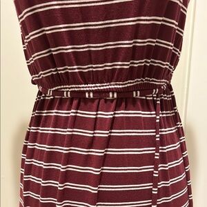 Stylish maroon maxi dress with white stripes. Sleeveless design. Perfect for casual outings. Slit on left side. Missing tag 🏷️