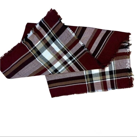 Maroon brown black white plaid check soft fall winter blanket scarf