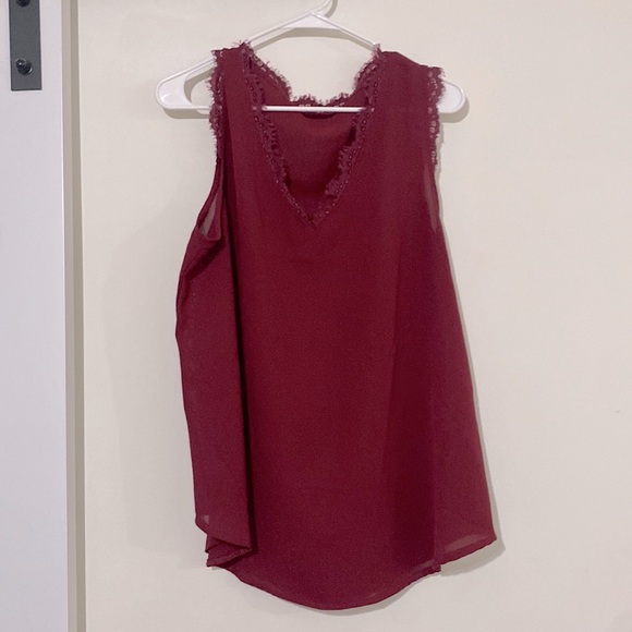 Maroon wide strap blouse with lace detail on neck and sleeves. XL true to size, no stretch