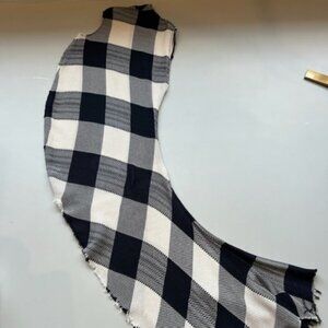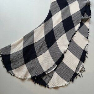 A raw hem and cascading, asymmetrical side panel play up the ultra-modern style of this striking sheath woven in exploded gingham checks.