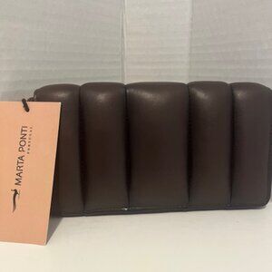 Made in Portugal. Size 7.5” x 4” X 0.8”. Colors chocolate brown. Material: outer 100% leather and metal hardware. 10 card slots, inner zip pocket, 4 inner slip pockets and zip top outer closure. Quilted puffy style. Designer logo “MARTA PONTI” embossed on inside. Condition: NWT.