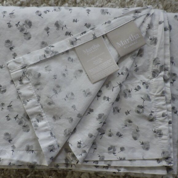 Martha Stewart Flat Sheet White Grey Floral Pattern 100% Cotton 84X204" Cottage