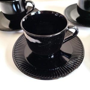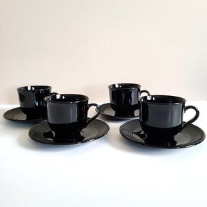 Martha Stewart everyday Arcoroc France set of 4 black ceramic cups with saucers.
