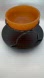 Martha Sturdy amber acrylic bowl in metal stand. Rare artist marked piece.